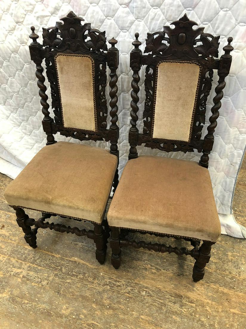 Oak Carved Upholstered Side Chairs