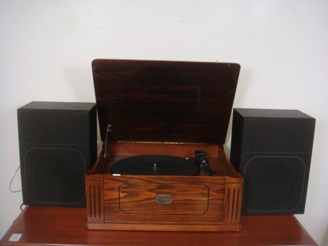 Oak Case Record Player with Speakers: