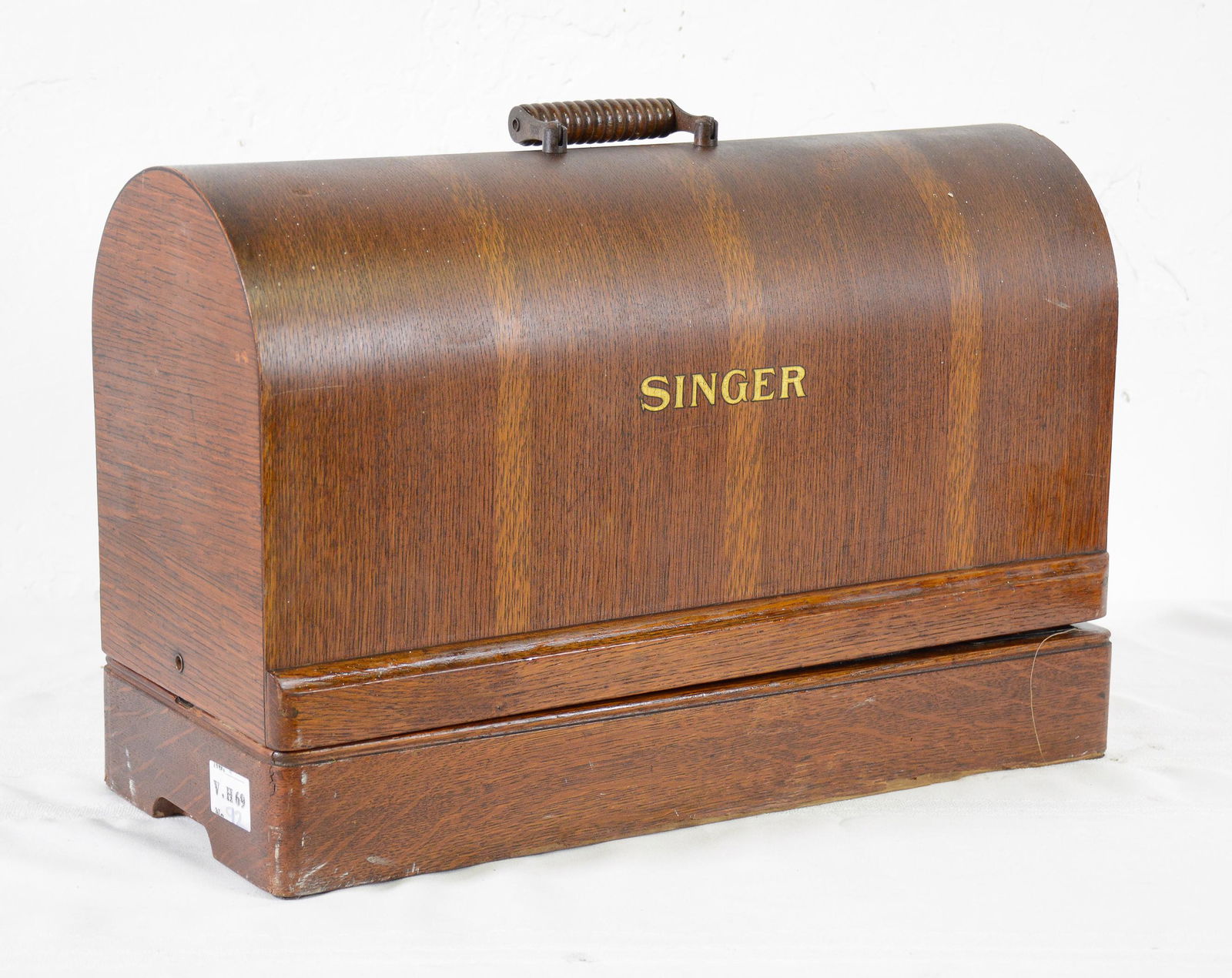 SoldSinger Sewing Machine In Oak CaseOak Cased Singer Sewing Machine - 14 in tall x 17 x 9See Sold Price