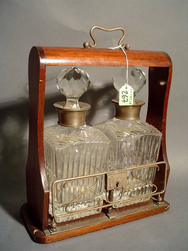 OAK CASED TWO BOTTLE SILVERPLATE MOUNTED TANATLUS