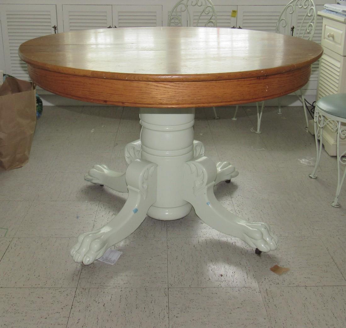 Oak Claw Foot Table with White Painted Base