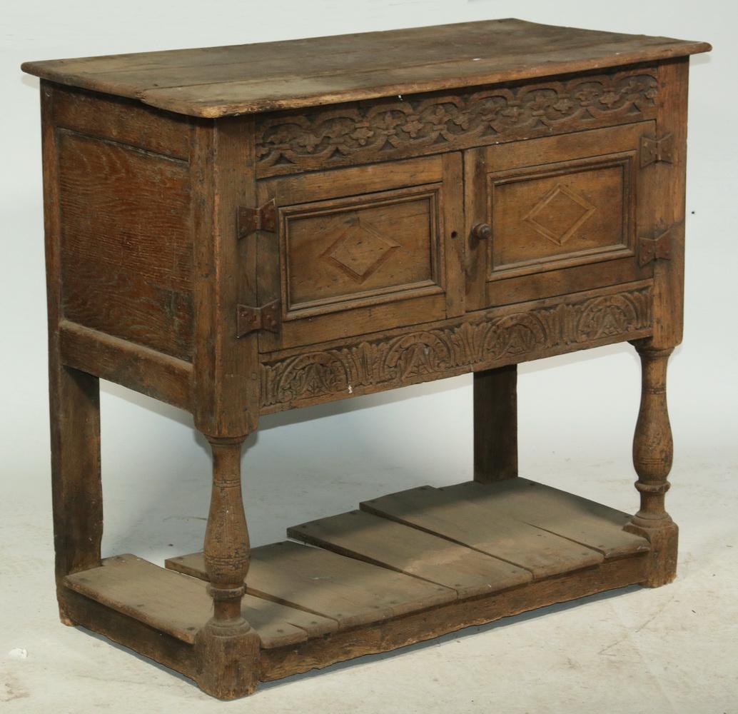 An oak 'Estate' cupboard on stand Parts 17th century, but largely later in dateAn oak livery cupboard Probably constructed from first half 17th century elements such as the Ja...18th Century Old English Oak Paneled Blanket ChestFeb 21, 2026An English panelled oak table casket Probably late 16th/early 17th century and laterENGLISH JACOBEAN STYLE CARVED OAK FOLDING COURT / BAR CABINETFeb 21, 202617TH C. OAK TAVERN TABLEFeb 21, 2026An oak and walnut demi-lune credence table Some elements 17th century, but largely of a later dateOAK DROP-LEAF GATE LEG TABLE, 18TH/19TH CENTURYFeb 22, 2026RENAISSANCE REVIVAL STYLE DANISH OAK CABINET3 days LeftAmerican Stained Wood Side Cabinet, 19th CenturyFeb 24, 2026Oak Welsh Dresser7 mins LeftCarved Oak British Renaissance Cupboard7 mins LeftEarly 17th Century English Renaissance Cupboard7 mins Left18th Century Carved Oak Continental Reliquary Cabinet with Columns4 days LeftA late 17th/early 18th century oak low press cupboardA GEORGE II OAK TABLE TOP CUPBOARD, CIRCA 1740Feb 18, 2026
