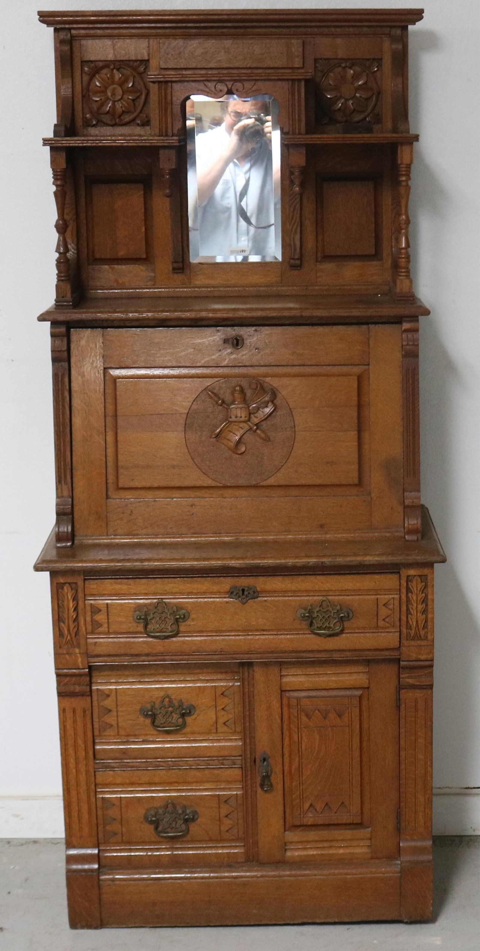 OAK FALL FRONT DESK, MIRRORED TOP, FITTED