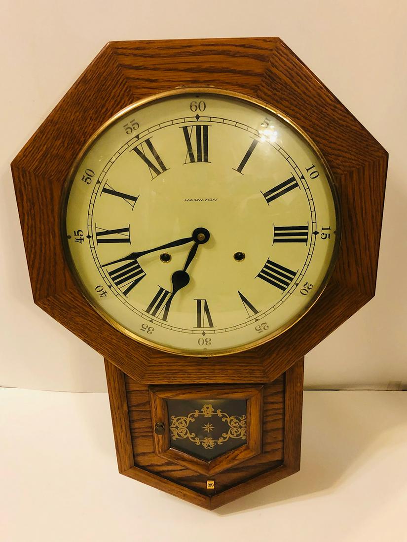 SoldWaterbury "Halifax" Carved Oak Wall ClockAntique Waterbury "Halifax" Carved Oak Wall Clock. Signed dial, signed T&S movement, gong strike with wood stick, brass bob pendulum, beautifulSee Sold Price