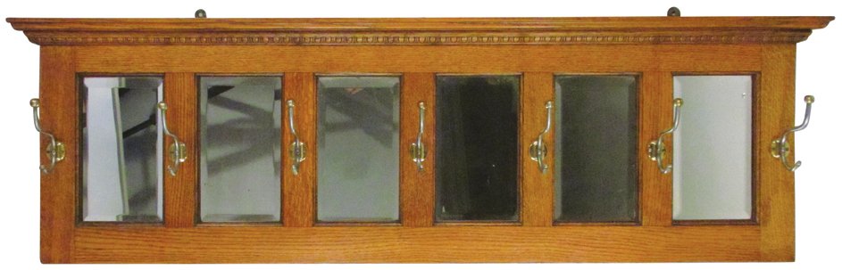 Oak Hanging Hat Rack with hats