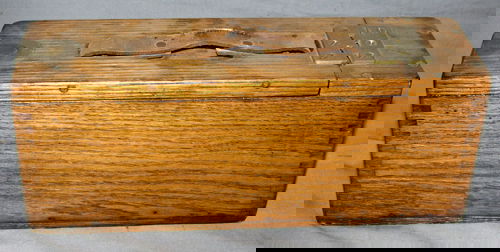 OAK HINGED BOX, C.1917, H 6", W 4 1/2", L 15"