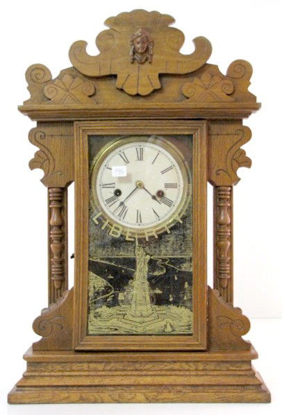 Oak Kitchen Clock w/Lady Liberty Glass