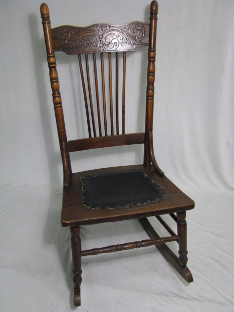 OAK PRESSED SPINDLE BACK SEWING ROCKING CHAIR