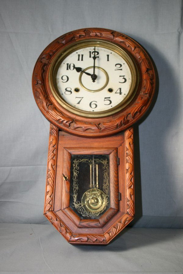 Oak Regulator Clock With Carved Face