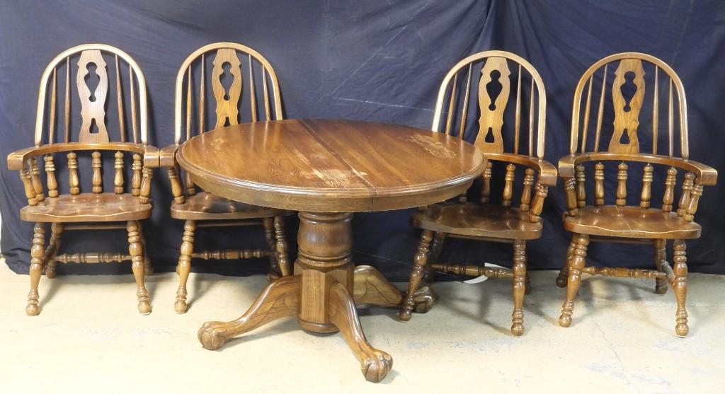 ASSORTED AMERICAN WINDSOR AND CLASSICAL SIDE CHAIRS, LOT OF FOURMar 06, 2026SHENANDOAH VALLEY OF VIRGINIA OAK ROCKING CHAIR / ROCKER AND NORTH CAROLINA OAK SIDE CHAIR, LOT OFMar 06, 2026Set 3 Antique George Hay Plank Bottom Chairs4 days LeftAntique? Oak Kitchen Table w/ 4 pcs Pressed Back Caned Chairs & Glass Top. Excellent Condition.Antique Round Oak Dining Table featuring Carved Claw-Foot Legs and Four Chairs - 30"x4'Mar 08, 2026Solid Oak Dining Table with Chairs1 day LeftEnglish Windsor-style Dining Room Suite6 days LeftAntique Oak Arm Chair & StoolMar 04, 2026Old Hickory Octagonal Barrel Table and Two Rattan and Barrel Cushioned ChairsMar 01, 2026Pine Child's Table with Two ChairsMar 04, 2026Danish Oak Farm Table, Drop-Leaf, Henning Kjaernulf12 hrs LeftFour Oak Hunt Brand Country ChairsCherry Drop Leaf Dining Table With Two LeavesMar 04, 2026English Oak Nesting TablesChippendale Style Dining Room Table & ChairsMar 06, 2026American Oak Pedestal Table w Six Pressed Back Oak ChairsMar 07, 2026