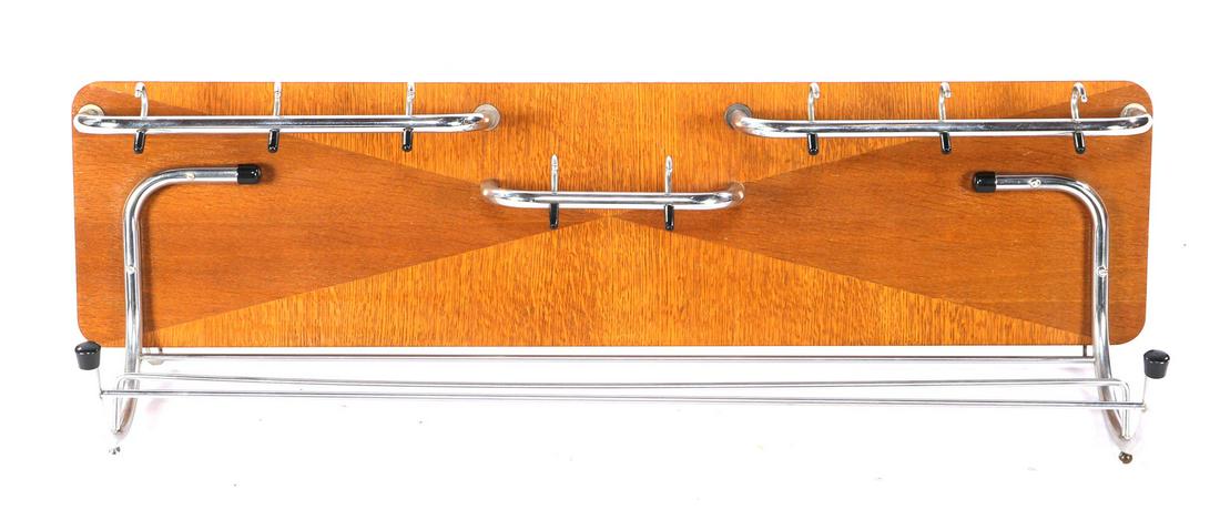 GERMAN MAHOGANY WALL COAT RACK C. 1960S