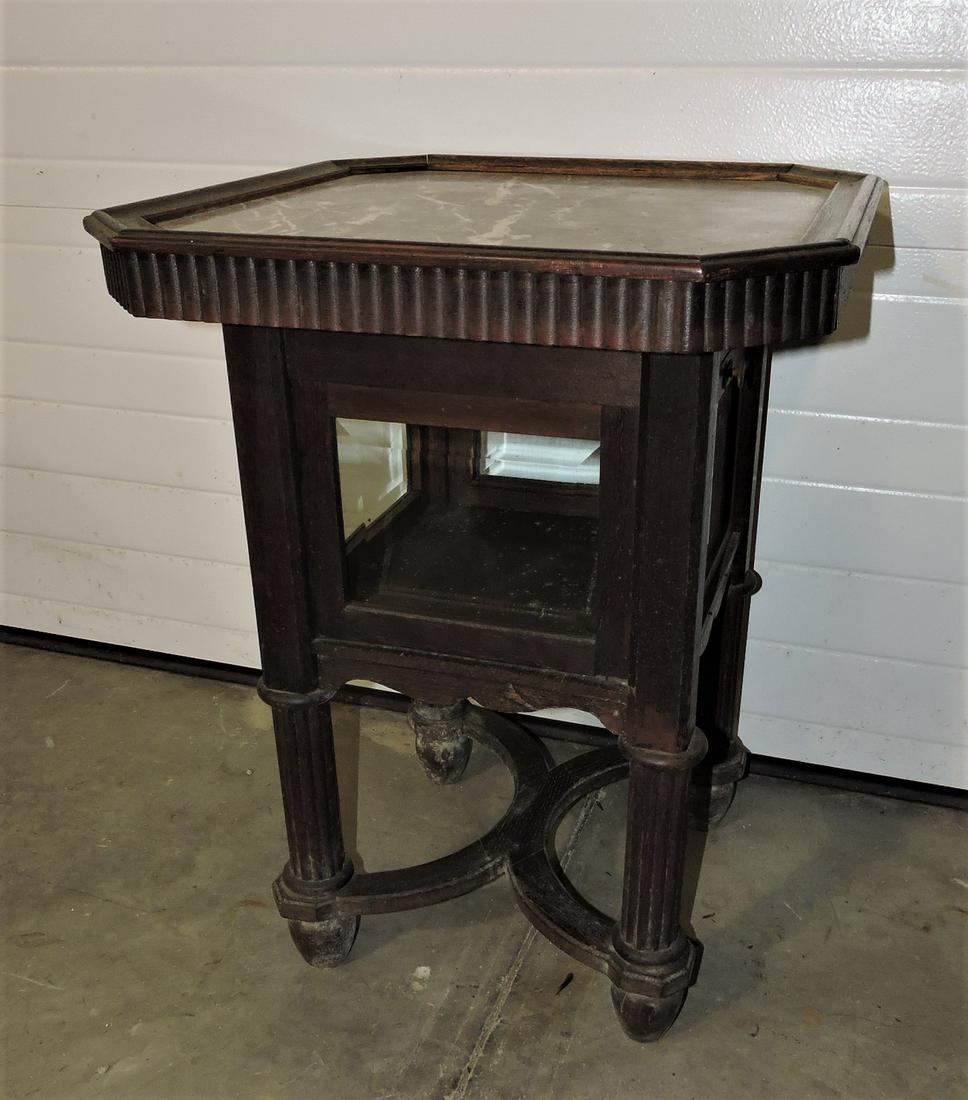 Oak vitrine table with marble top,