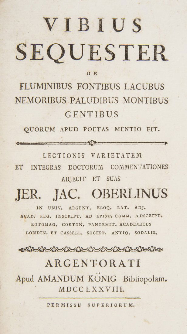 OBERLIN, Jeremias Jakob. Vibius Sequester