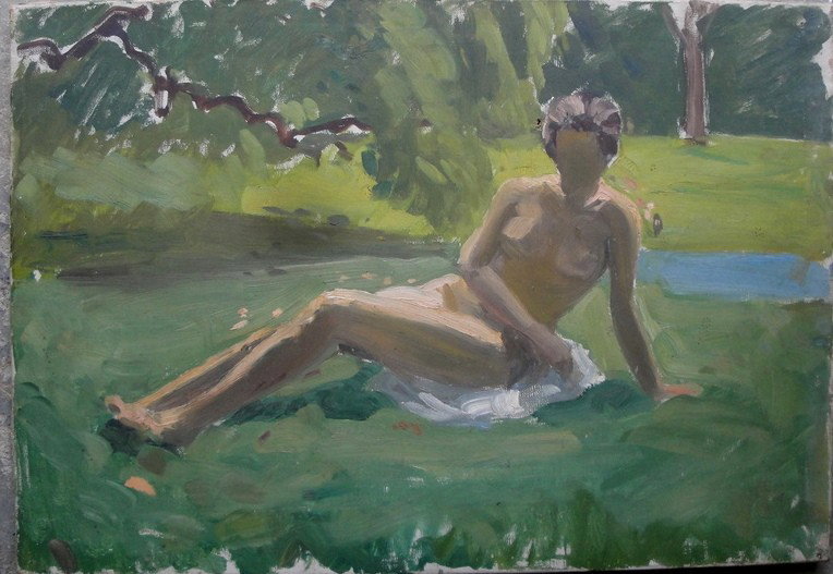 O/C Nondescript sitting nude - unframed - two small