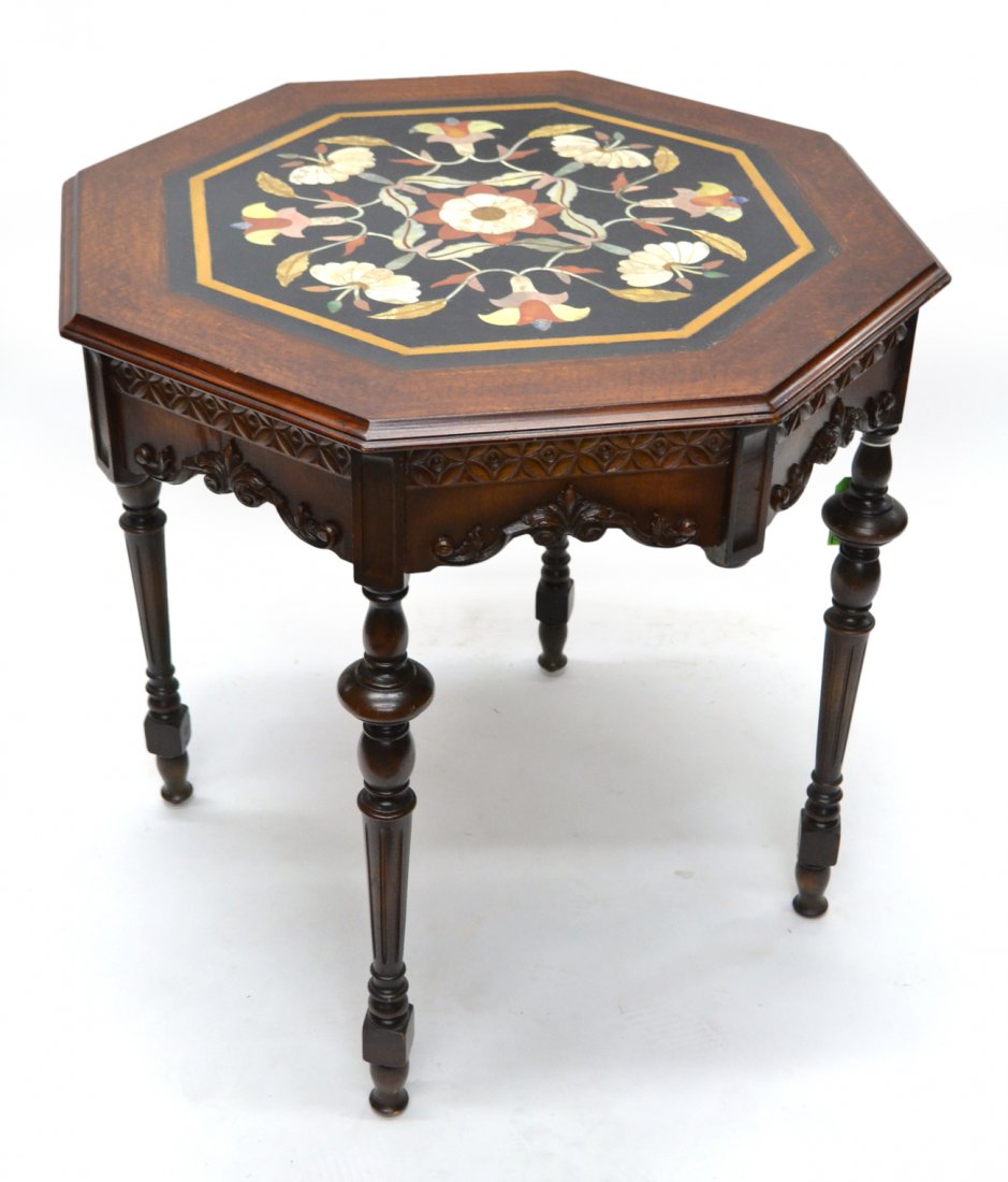 Octagonal Regency Rosewood TableFeb 26, 2026An Indian Pietra Dura Inlaid Marble Chess Board on a European Ebonized Game Table, 18TH CenturyMar 06, 2026Neoclassical Style Occasional TableFeb 26, 2026Italian Pietra Dura Marble Top Center TableMar 19, 2026RENAISSANCE REVIVAL MARQUETRY INLAID TABLEFeb 24, 2026An Antique Hardwood Stool or Table with Marble Top5 days LeftExceptional Pietra Dura Marble Table2 days LeftAn important and antique veneer wood side table with pietra dura inlay and multicolor marbleFeb 24, 2026An Antique Square Hardwood Side Table5 days LeftPietra Dura Specimen Marble Games TableApr 07, 2026Baker Highly Inlaid Library Table Desk Rare Model Wood Brown767 Lots AwayRococo Style Portoro Marble Top Walnut TableApr 14, 2026Inlaid coffee tableFeb 26, 2026Mahogany Tilt-Top Table with Piecrust Edge Chippendale StyleMar 02, 2026Maitland Smith Figural Mahogany Center Table with Carved Scalloped EdgeFeb 24, 2026ITALIAN MARQUETRY TILT-TOP CENTER TABLE, 58.75"DIAM6 days Left