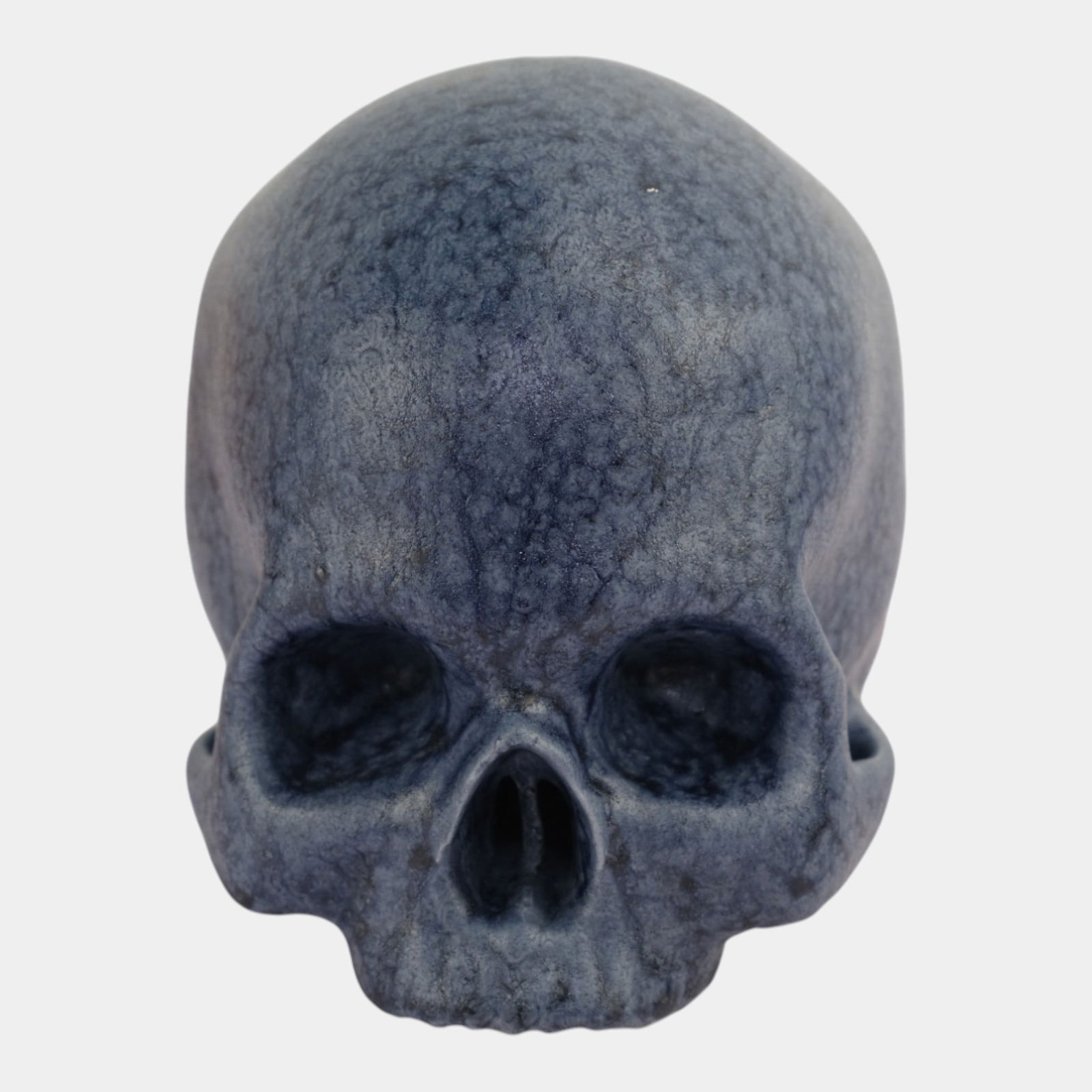 Odd Inq Pottery Jonathan While Skull Curdled Blue Glaze Skull Casting