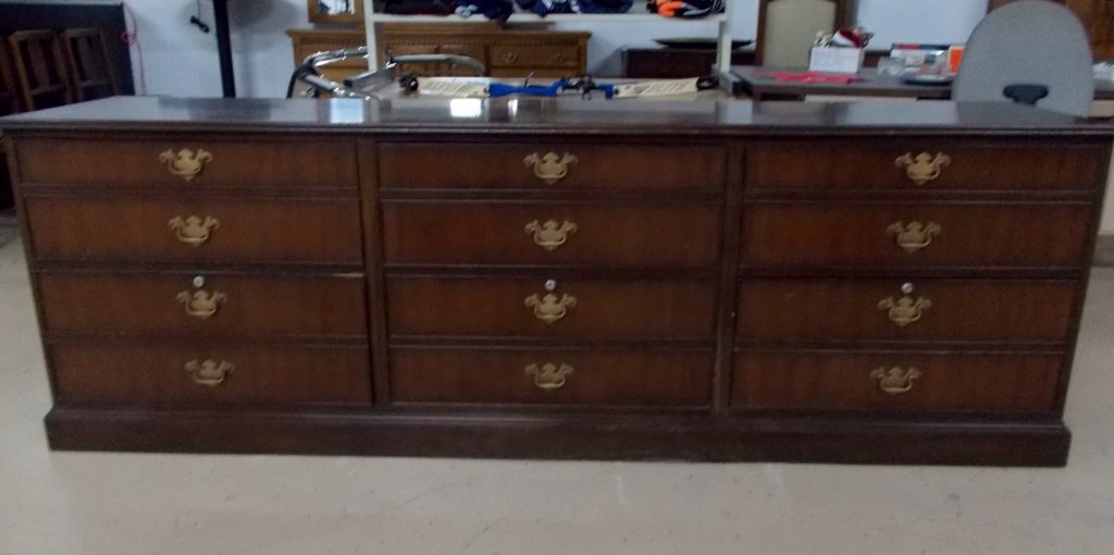 Walnut Office Credenza, Desk. GEORGE NELSON for HERMAN MILLER. L shape executive office desk with crWalnut Office Credenza, Desk. GEORGE NELSON for HERMAN MILLER. L shape executive office desk with credenza side. Steel legs and trim details. HM Label. Dimensions: Height: 30 inches, Width: 85.5 inche