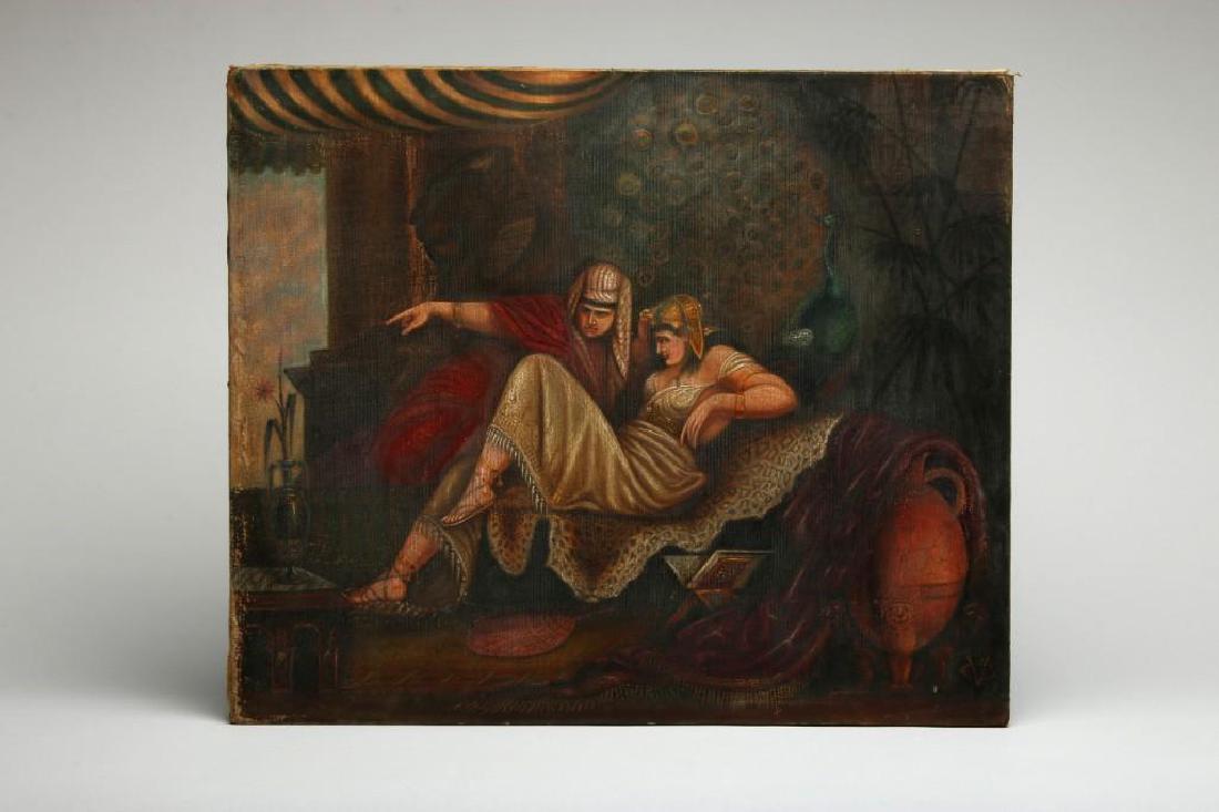 Oil Canvas Figures Egyptian Interior Scene Monogram CV