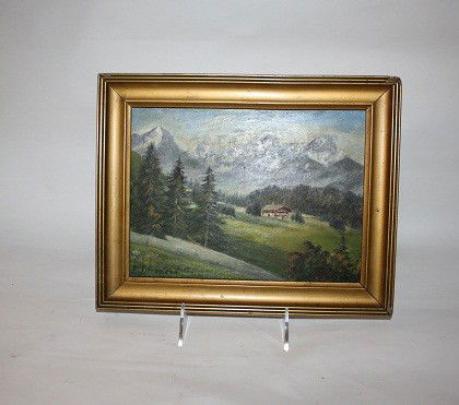 SoldSMALL 1930'S CALIFORNIA LANDSCAPE PAINTINGOIL ON BOARD, MOUNTAIN LANDSCAPE PAINTING. SIGNED LOWER RIGHT. E.O. CRAMER. GOOD CONDITION. 12 1/2" x 10" IN FRAME.See Sold Price