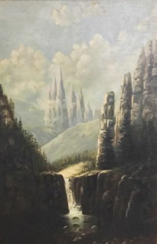 Oil on Board With Waterfall