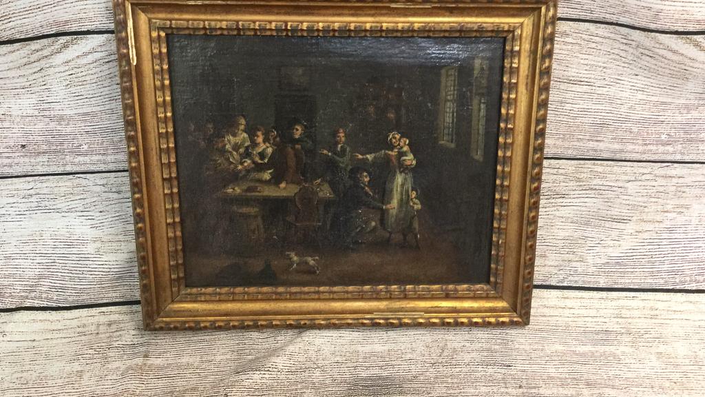 TAVERN SCENE WITH GAMERS Medium: oil painting on canvas Title: Tavern Scene with Gamers3 days LeftOriginal oil painting on canvas with illegible signatureFeb 28, 2026Original oil painting on canvas with illegible signature3 days LeftAntique 19C European oil painting AFTER Adriaen van OstadeMar 15, 2026J Vernier (Europe,19C) oil painting antiqueApr 12, 2026European Genre Painting (Tavern Scene)Feb 26, 2026LEON BARRILOUT (EUROPEAN) OIL ON CANVAS TAVERN SCENE.1 day LeftTrial Scene. Signed. Flemish School. 17th CenturyFeb 25, 2026J.M. Culverhouse, Interior Scene Violin PlayerFeb 17, 2026Italian School, "Prayer Before a Court of Fools," late 18th c., H.- 48 in., W.- 40 1/2 in., Framed-Feb 27, 2026E. Larroque (20th cent.) Interior Scene Oil on Canvas PaintingFeb 17, 2026Important Palace Interior, Franco-Flemish Master of the 17th CenturyFeb 25, 2026Vintage Original Figurative Oil Painting on Canvas in Gilt FrameMar 03, 2026Ferdinand Fagerlin Attr. Interior Oil, 19th C.Apr 14, 2026Gerard Thomas (Flemish, 1660-1720)Feb 25, 2026Palatial Continental School Oil on Canvas Painting4 days Left