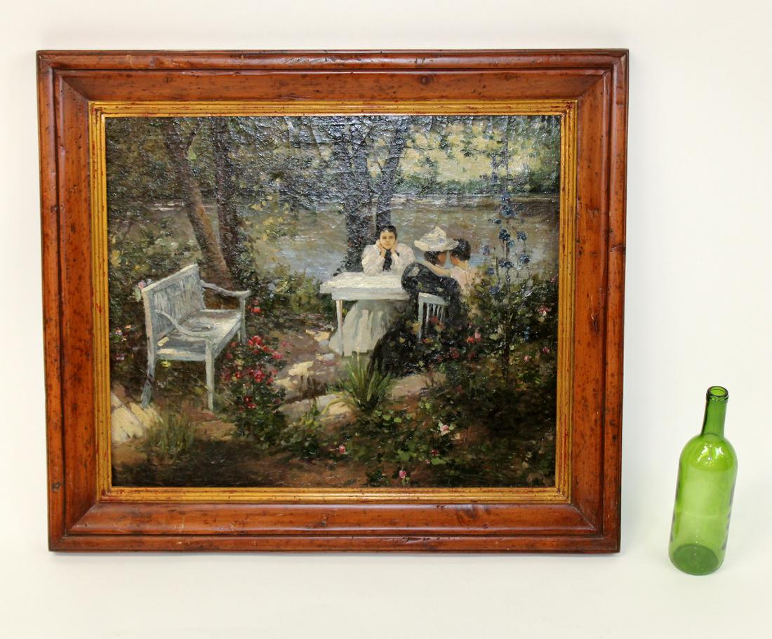 Oil on canvas garden scene
