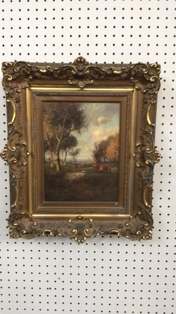 Oil on Canvas Landscape with Cattle