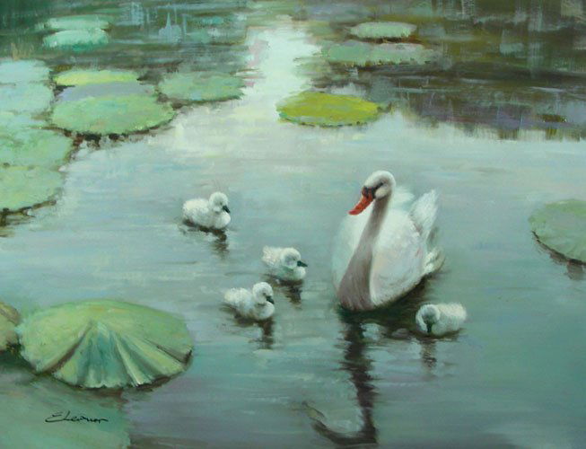 OIL ON CANVAS: SWANS