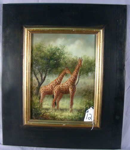 OIL ON CANVAS: TWO GIRAFFES