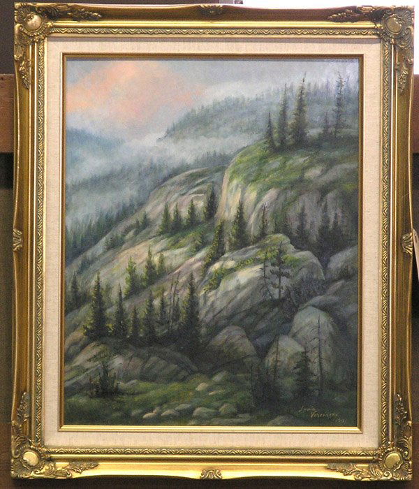 SoldPainting, High SierraAmerican School (19th/20th century), High Sierra, oil on board, unsigned, overall (with frame): 15.5"h x 20.5"wSee Sold Price