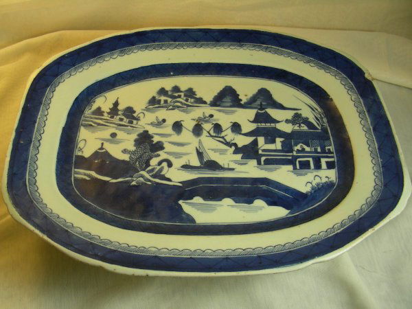 OLD BLUE WHITE CANTON PORCELAIN PLATTER