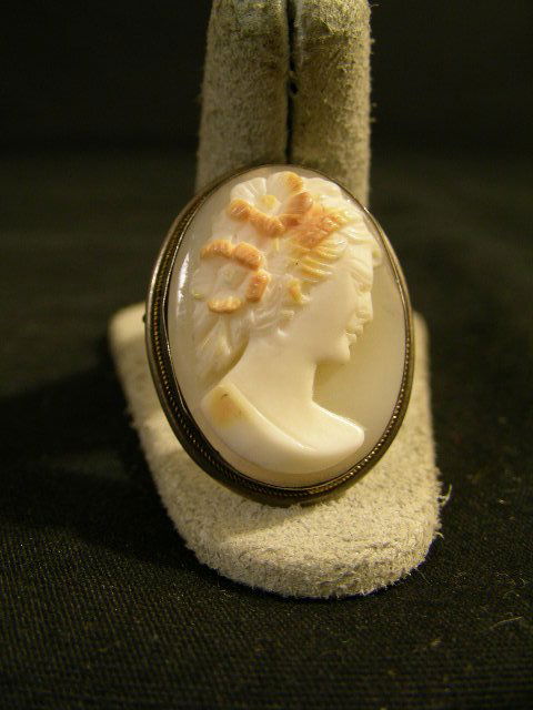 OLD CAMEO SHELL BROOCH PENDANT 800 SILVER