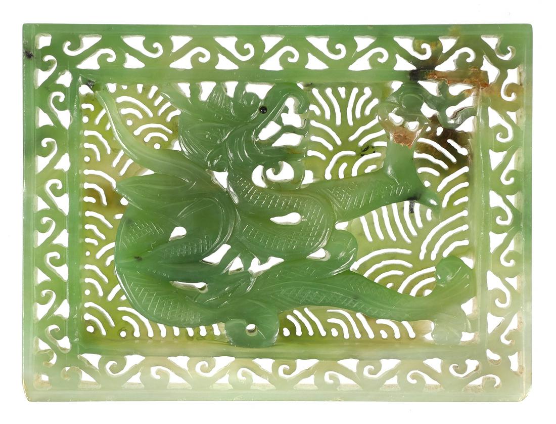 Old Chinese Jade Dragon Openwork Plaque