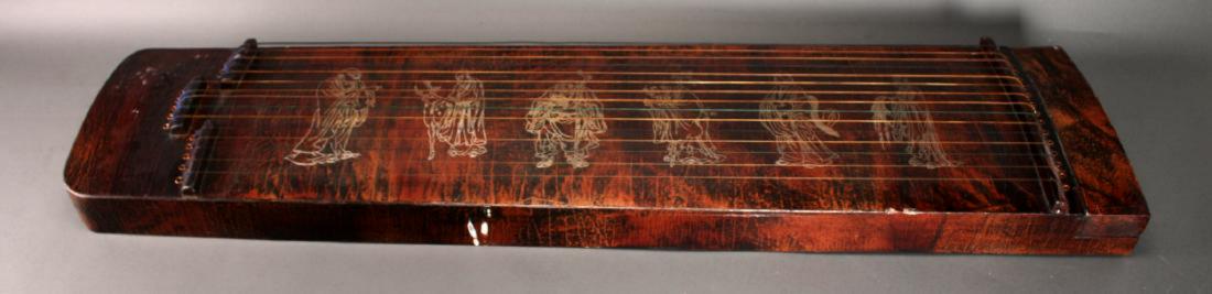 A seven-stringed guqin with a wooden base, lacquered and decorated with a gold-painted landscape ofCJ Auction$6009 hrs Left