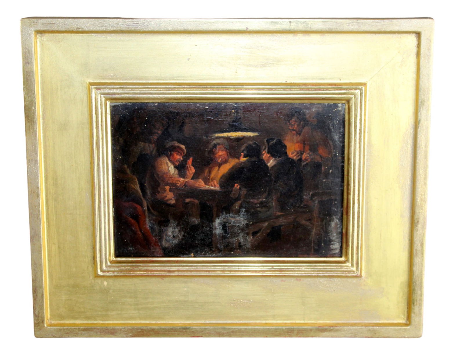 French oil on board painting "The Old Card Players" by Emile Ruffin