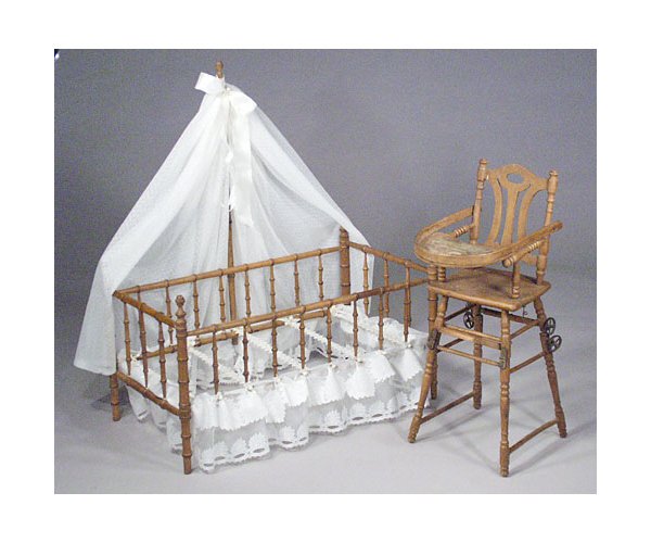 Old Doll Bed & Highchair/Stroller.