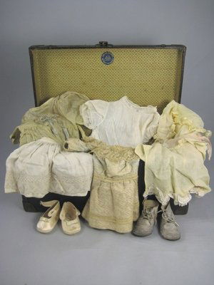 OLD DOLL TRUNK WITH CLOTHING