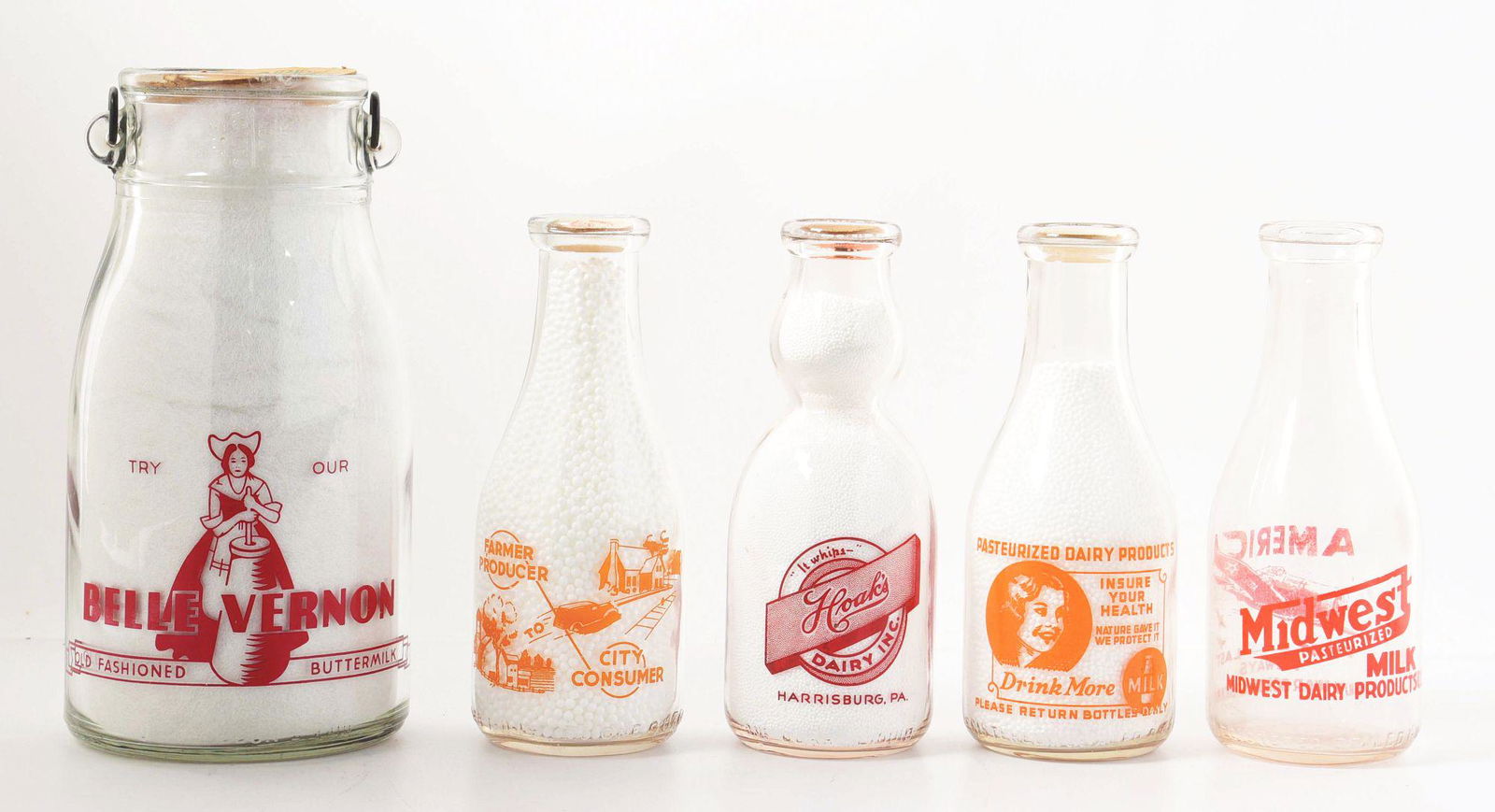 COLLECTION OF 5 VARIOUS MILK AND BUTTER JARS.