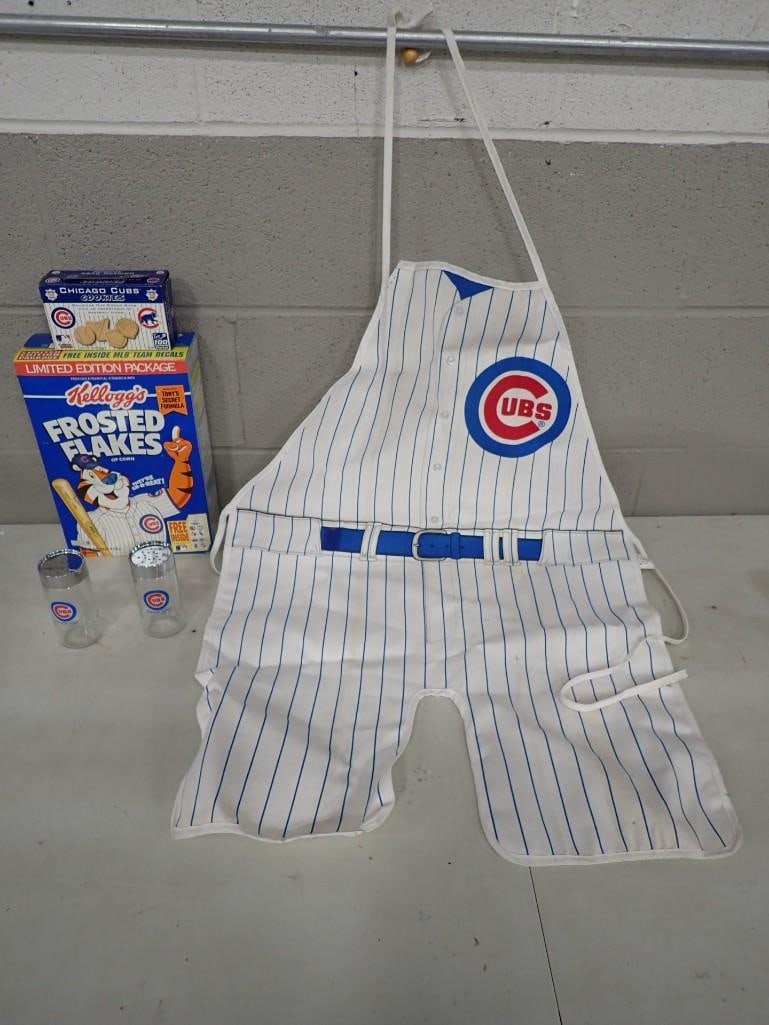 Chicago Cubs Lot incl Apron, Drinking Glasses, Frosted Flakes Box and Cookies Box