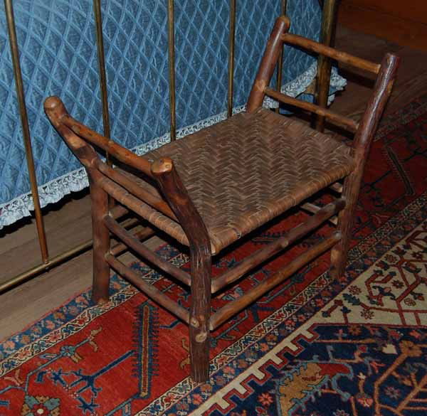 Rustic Pecan Antique Style French Country Bench with Rattan Rush Seat