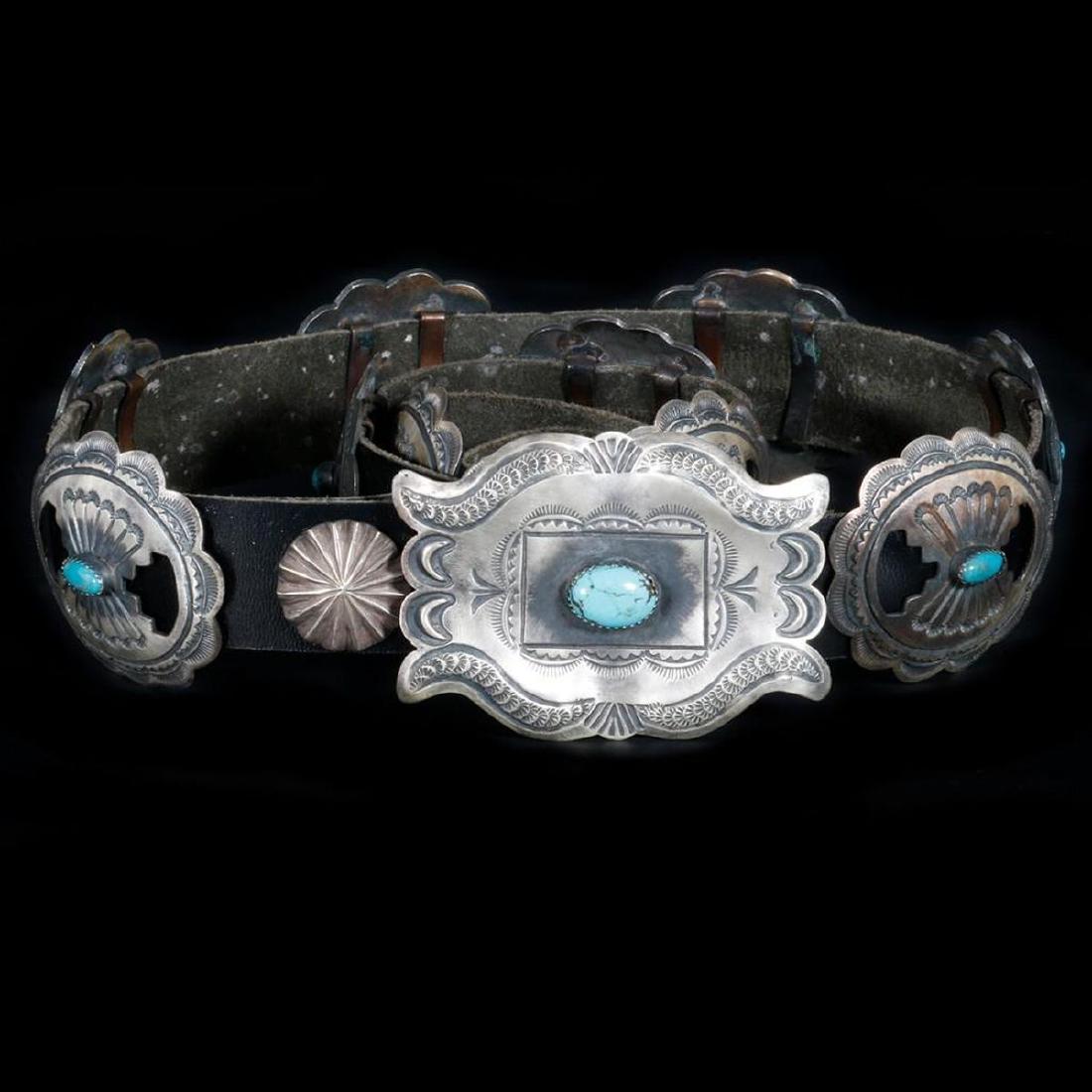 A Delbert Delgarito Navajo sterling silver and turquoise concho beltJohn Moran Auctioneers, Inc.4.7(499)$550(2 bids)Feb 24, 2026