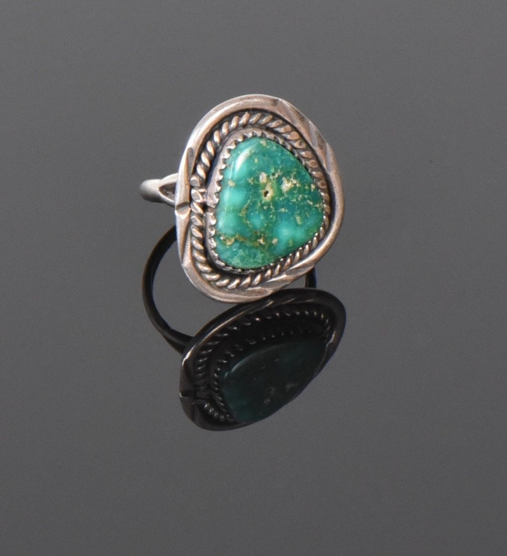 Old Pawn Green Turquoise Sterling Silver Ring.