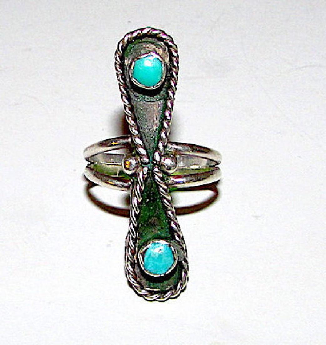 Vintage Navajo Silver Ring featuring Large Turquoise Cabochon Category: RingsPalmer's Auction Co4.4(69)$5(1 bid)Feb 17, 2026