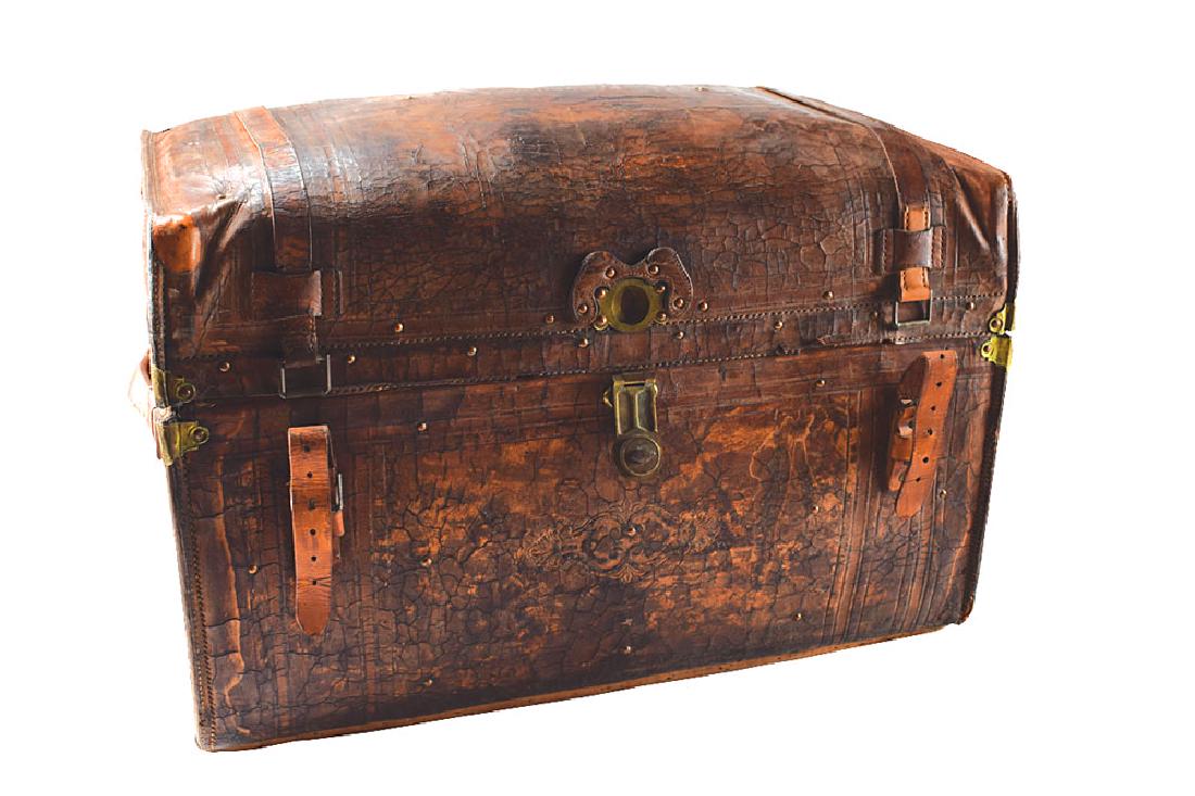 Antique alligator hide steamer trunk. Interior upholstered in pink satin and fitted to store hats.Tremont Auctions4.6(313)$150Mar 01, 2026