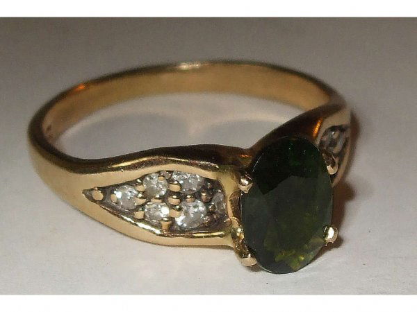 18K Yellow Gold Green Tourmaline and Diamond Ring Size 7.5