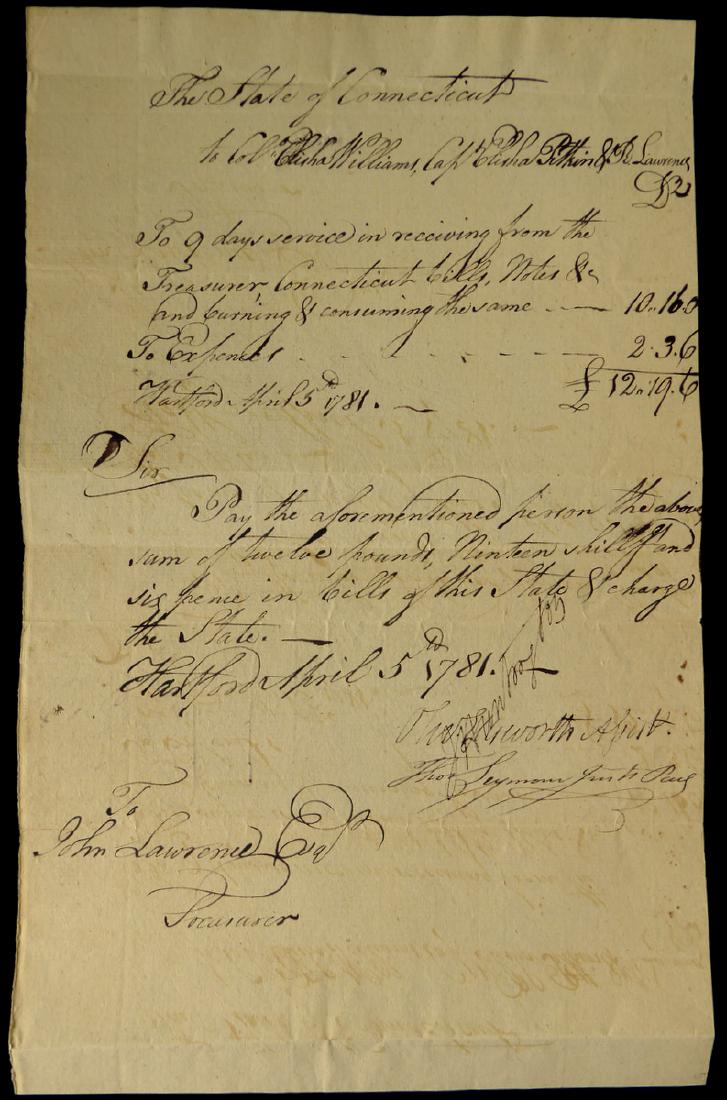 OLIVER ELLSWORTH - 1781 Pay Order Signed