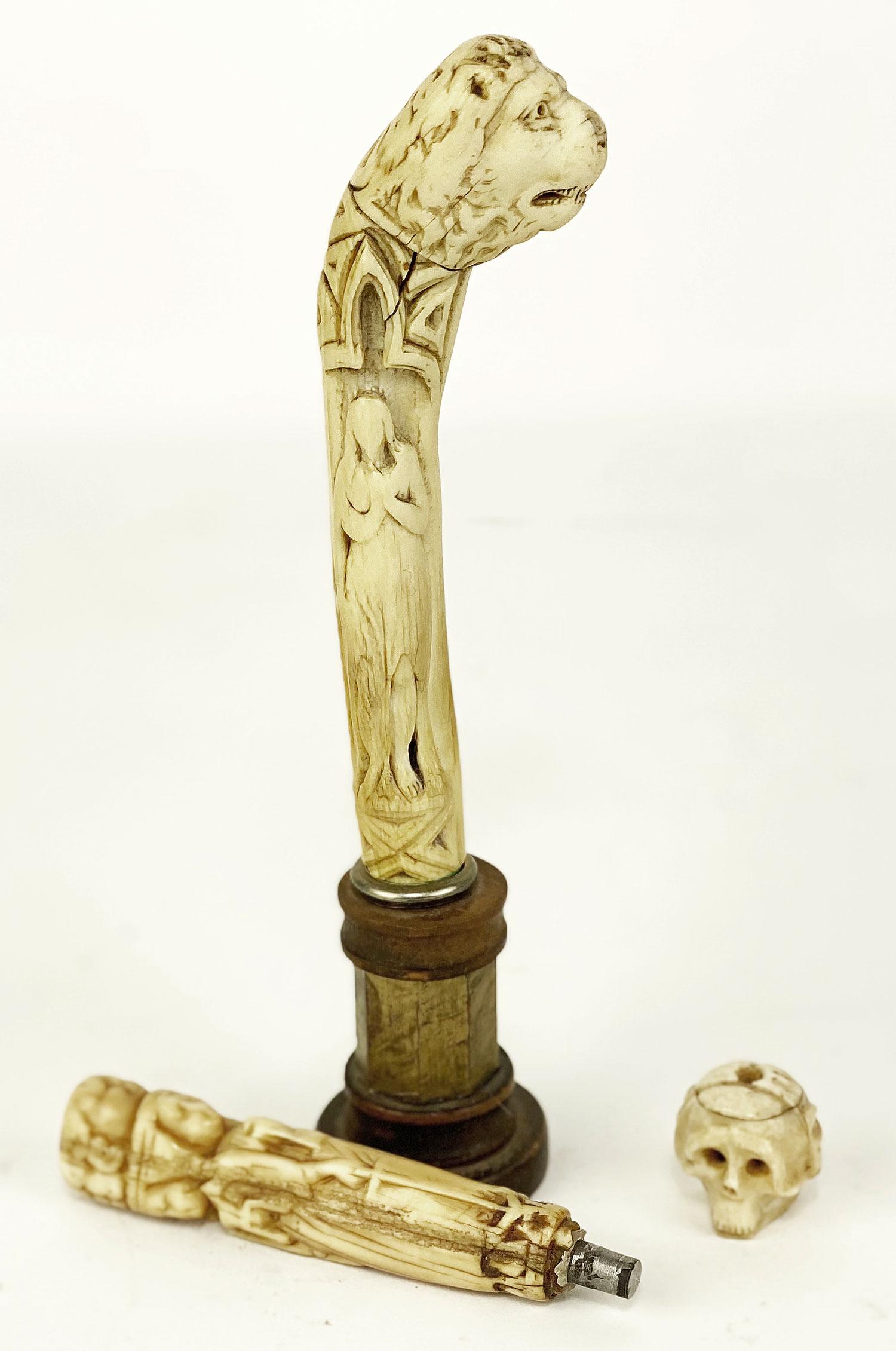 (on 3) GOTHIC CARVED BONE OBJECTS