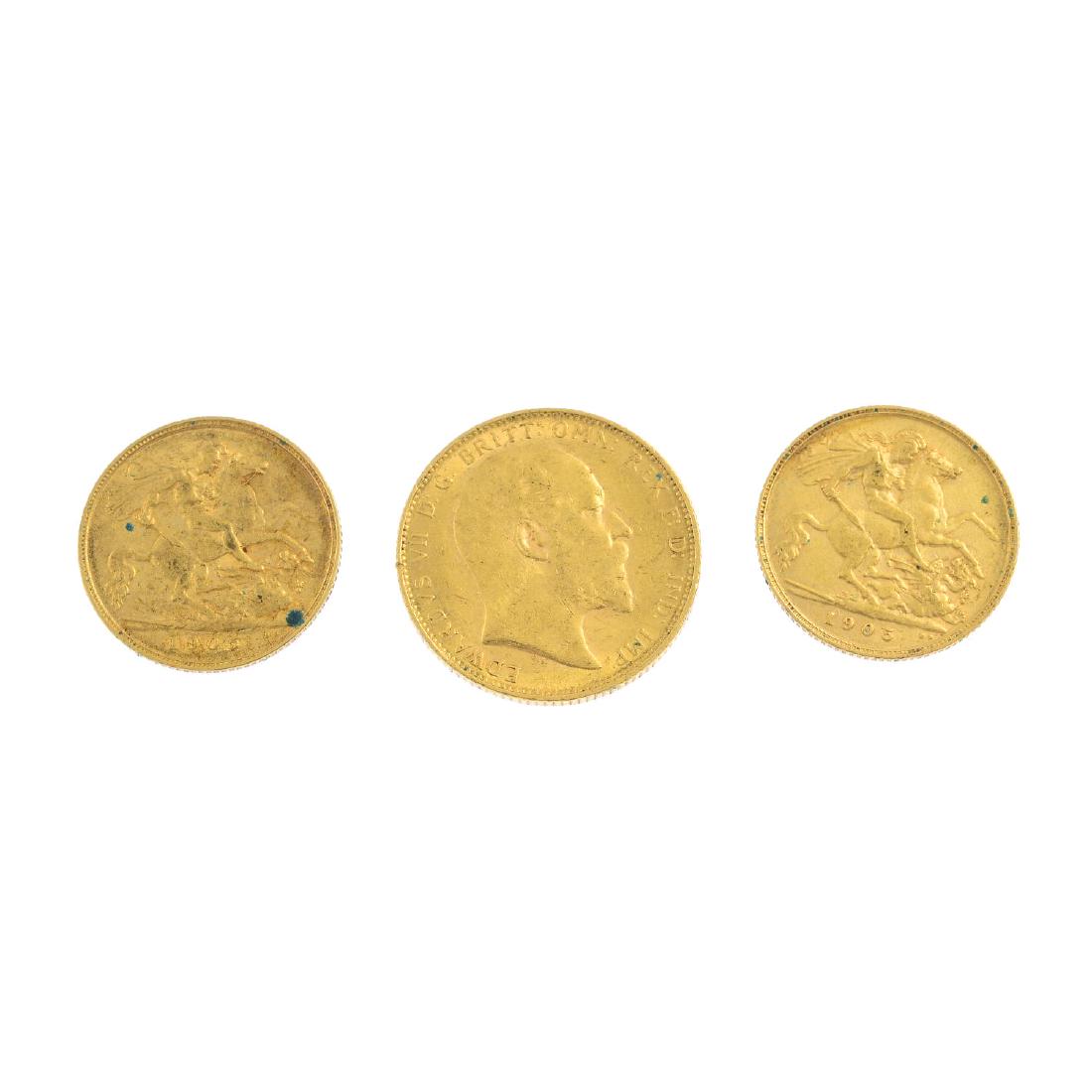 One full sovereign, dated 1906 and two half sovereigns,