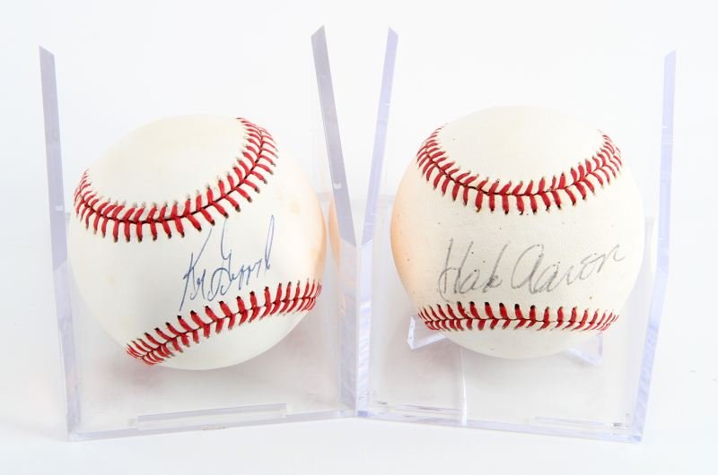 ONE HANK AARON ONE KEN GRIFFEY SIGNED BASEBALLS