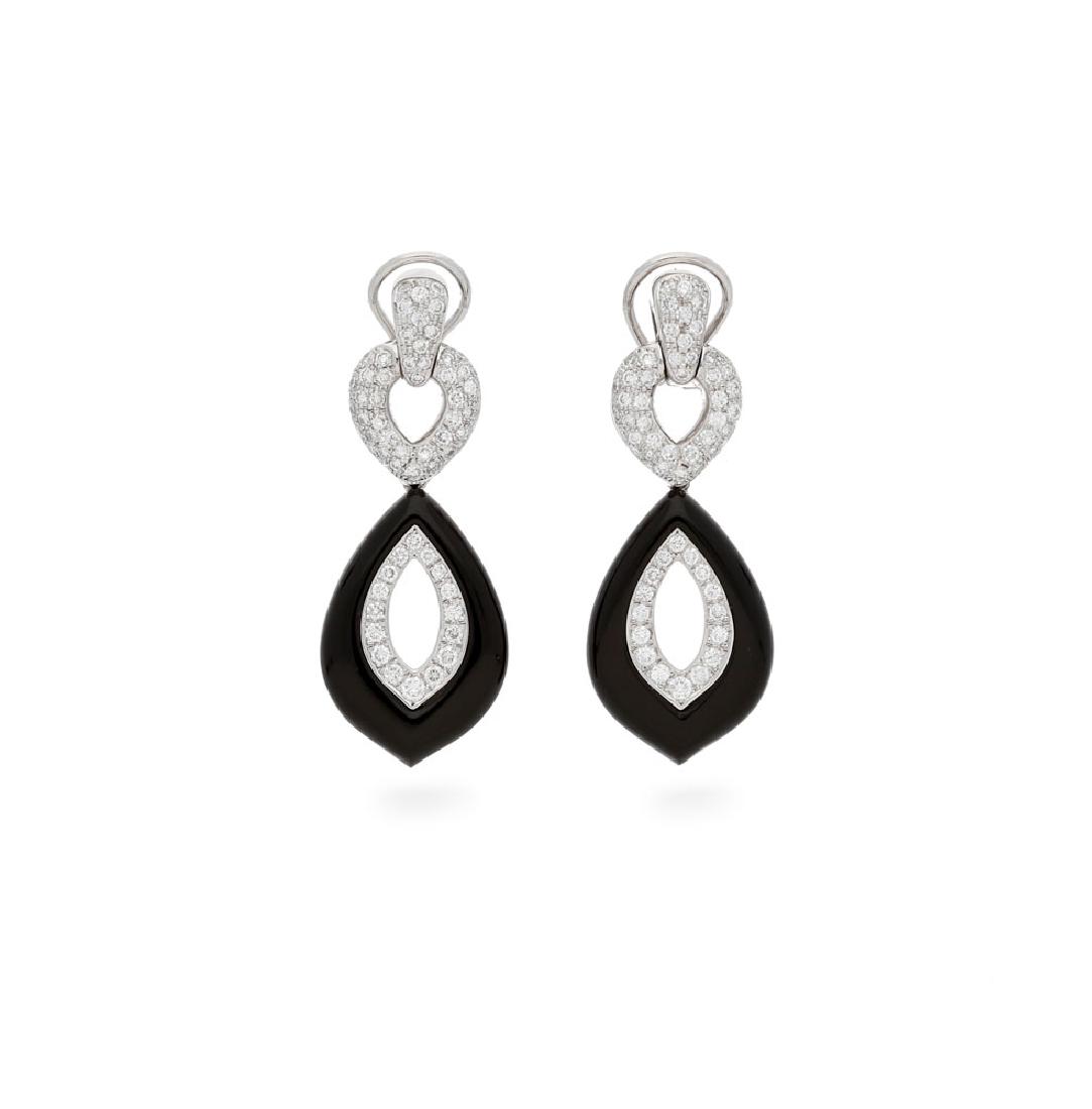 Onyx and diamonds long earrings